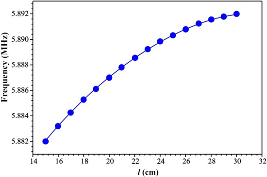 Figure 9 demonstrates the dependence of the resonance excitation frequency of ZnO nanorods/LCM sensor on the distance to the UV radiation source. It is observed that the change in frequency from the distance to the UV radiation source has a nonlinear character, which is determined by the absorption of UV radiation in the atmosphere. As the distance increases, the change of the sensor frequency decreases, because the absorption of UV radiation increases.