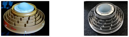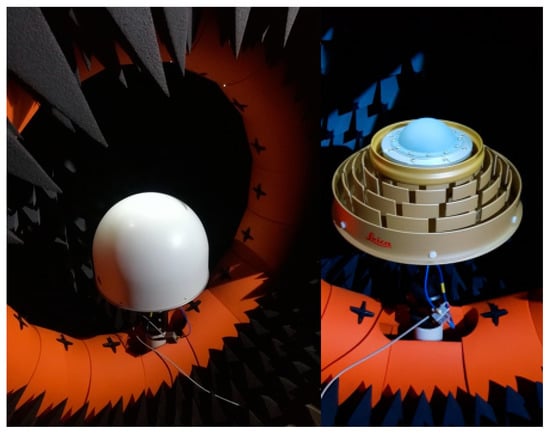 Among the canonical antennas for reference stations, the first subgroup comprises choke-ring antennas that are typically used as static reference antennas. In this analysis, measurements for the Leica AR25 antenna, the Novatel GNSS-750, and the Javad RingAnt-DM are available, and the first two are shown in Figure 2.