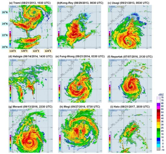 The typhoon information and radar reflectivity image were obtained from the Central Weather Bureau of Taiwan, which are available at https://rdc28.cwb.gov.tw/ (accessed on 10 January 2021) and https://e-service.cwb.gov.tw/HistoryDataQuery/index.jsp (accessed on 10 January 2021).