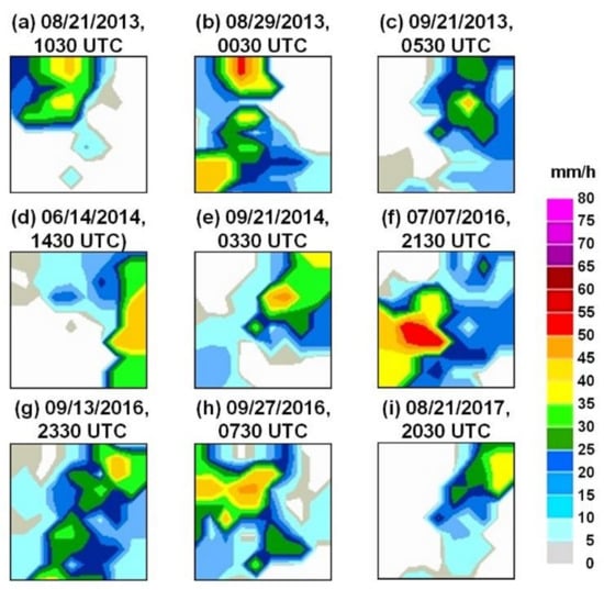- Smith, J.A.; Baeck, M.L.; Meierdiercks, K.L.; Miller, A.J.; Krajewski, W.F. Radar rainfall estimation for flash flood forecasting in small urban watersheds. Adv. Water Resour. 2007, 30, 2087–2097. [Google Scholar] [CrossRef]
