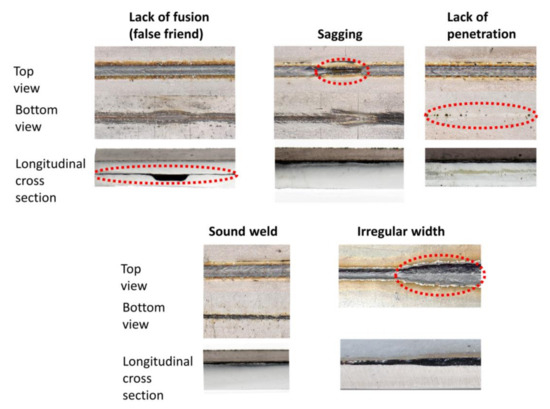 In a further step, several welding trials based on zinc-coated steel sheets were manually characterized by human experts in terms of quality according to international standards (i.e., EN ISO 13919-1/EN ISO 6520-1) [60,61].