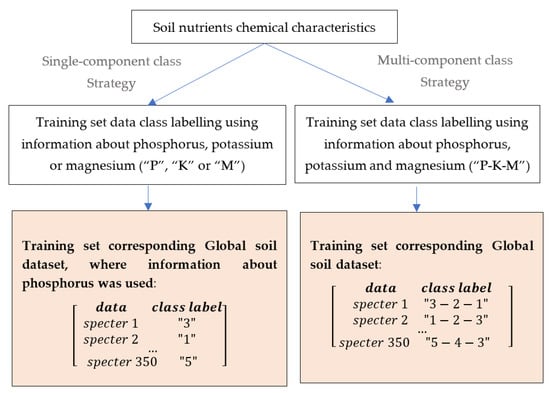The best results in our research can be obtained for a local farm using ANN. For a Global soil dataset, the best strategy would be using LS-SVM with 50 PCs and multi-component categories for data labelling. Category III provided the best result. Nevertheless, an acceptable level of accuracy can be achieved for potassium and magnesium when using Category II for classification.
