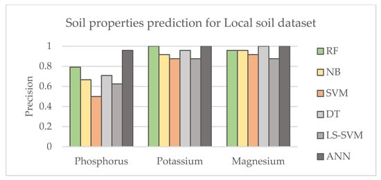 Furthermore, it was shown that both, soil structure and soil properties, significantly affect the performance of the ML methods. Consequently, a better accuracy can be achieved within a local farm due to the homogeneous texture and micronutrients variation.