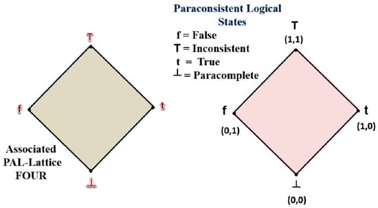 PL has, as an extension, paraconsistent annotated logic (PAL), which has an associated lattice with logical states represented at its vertices. This way, logical sentences can be obtained, where propositions P can be analyzed based on evidence [].