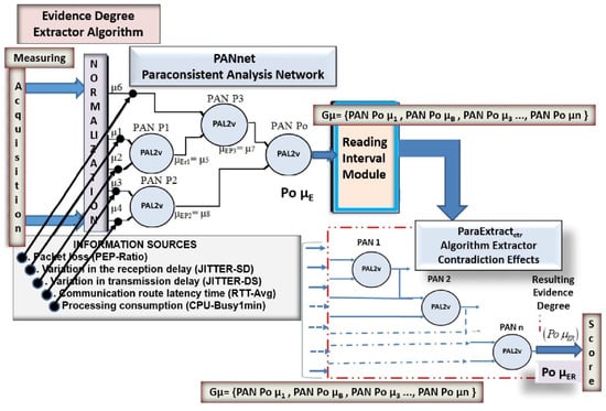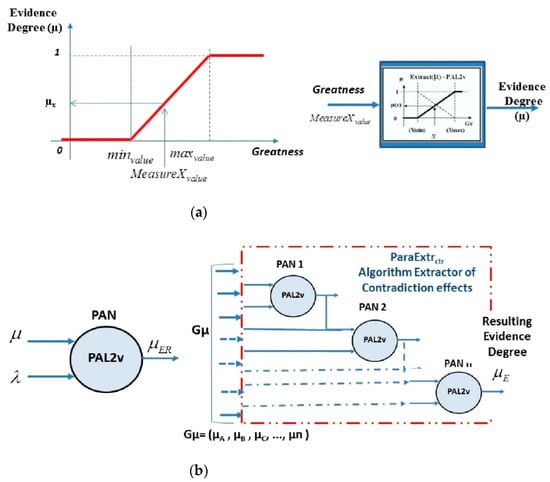 PANs are interconnected, forming a network-denominated paraconsistent analysis network (PANnet) [,]. These equations and algorithms of a PANnet act in the comparisons and analysis of values that represent information, even though these values come from contradictory information.