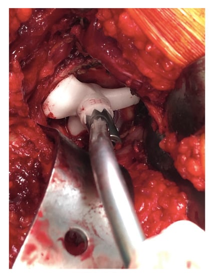 33. Schneider, A.K.; Pierrepont, J.W.; Hawdon, G.; McMahon, S. Clinical accuracy of a patient-specific femoral osteotomy guide in minimally-invasive posterior hip arthroplasty. Hip Int. J. Clin. Exp. Res. Hip Pathol. Ther. 2018, 28, 636–641. [Google Scholar] [CrossRef]