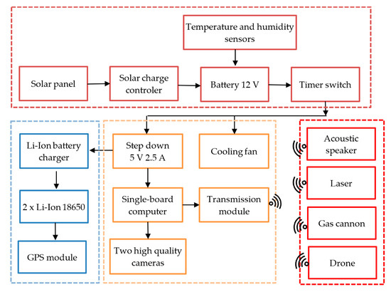 The method defined in our study, compared to those exposed in the above-mentioned research articles, generally does not rely on detecting individual birds but rather on optimizing learning algorithms to facilitate flock detection. Another significant difference rests in that the design presented herein can involve virtually any actuator, switchable by the wireless module integrated in the system. These aspects together form the actual novelty of the designed setup, as further indicated in