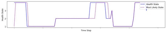 We simulate the greedy algorithm described in Section 4.2 to derive a greedy policy. The most likely state shown in Figure 8 is generated by. One can observe that the greedy policy generally provides accurate predictions of the actual health states in the proposed example.