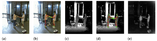 Example data captured by an RGB-D sensor as taken from the NTU RGB-D dataset [31] in (a) RGB, (b) RGB + Skeleton Joints, (c) Depth, (d) Depth + Skeleton Joints, and (e) IR modalities.