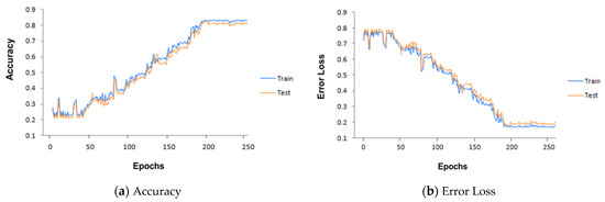 Our bidirectional LSTM has 128 hidden layers. It is trained through our core I-RBAC ontology and textual data in the form of sentences. The textual data of the SOC list describes real world business roles, including their tasks and the hierarchical relationships among them. During training, the Bi-LSTM learned the sentential context of roles in the provided text and mapped textual descriptions with corresponding concepts provided through core I-RBAC ontology. First, the textual description is passed on to Word2Vec, which embeds words in vector form and, later on, those vectors are passed to Bi-LSTM as input, whereas the corresponding business role and its hierarchical relationships with other roles and objects are also passed to Bi-LSTM for training purposes. Such information is obtained from core I-RBAC ontology. Our Bi-LSTM worked best with the Adam Optimizer, with training parameters as given in Table 2. It attains an accuracy of around 83% in 200 epochs. The performance of the Bi-LSTM model is explained through Figure 4 with the help obtained graphs of accuracy and error loss along with increasing epochs.