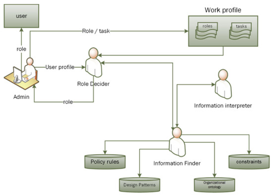 Software agents are autonomous in classifying, analyzing and searching knowledge from various sources. As stated above, the knowledge is stored in the form of ontologies in the I-RBAC framework. Agents utilize this knowledge to fulfill their responsibilities. The multi-agent paradigm for role assignment is shown in Figure 7.