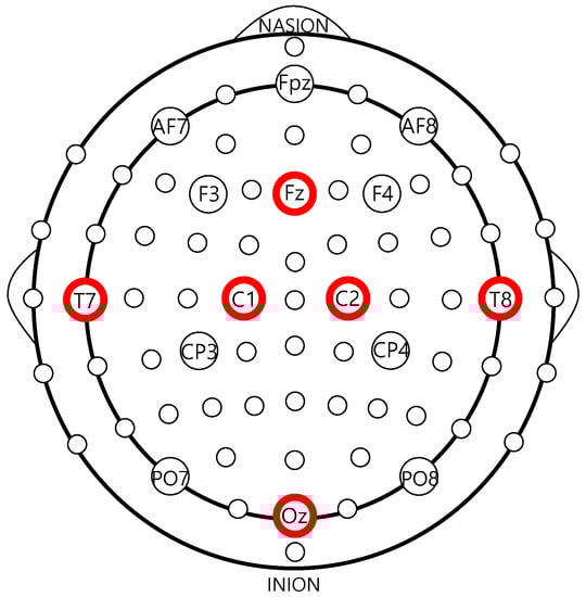 We measured and collected various bio-signal data, such as electroencephalography (EEG), electrocardiography (ECG), electromyography (EMG), motion, etc., for the classification and prediction of stroke diseases using bio-signals. Although all bio-signal data were collected in real time, we only used the EEG data to validate the stroke disease prediction and analysis. There are two main methods of measuring brain wave data. In the first method, scalp EEG can be measured painlessly by attaching electrodes to the outside of the skull, i.e., to the scalp. In the second method, electrodes can be surgically inserted into the subject’s cerebral cortex. This method provides a relatively neat signal, but it is highly invasive and involves the risk of incision into the skull. In this paper, the data are acquired using non-invasive scalp EEGs to allow for easier data collection during daily activities and verification accuracy for stroke prediction.