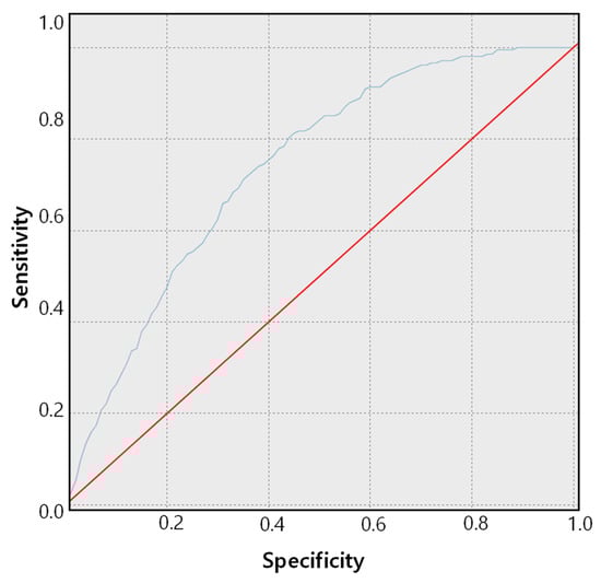 The ROC (receiver operating characteristic) curve of the CNN-bidirectional LSTM models in Table 4 is presented in Figure 6. The ROC curve is an index expressing the threshold and performance of binary classification prediction of stroke disease, where the x-axis indicates specificity and the y-axis indicates sensitivity.