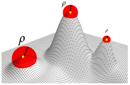 The saliency points characterize the most relevant features in the point cloud. These points must be retained in the simplification process. On the other hand, points with low saliency are redundant and have less importance for representing the original surface. Using the vector score defined by (14), we establish a dynamic ratio of influence that depends on the importance of the saliency of each point in the entire cloud. If point is salient, the ratio of influence will be small, and few points will be removed. If, however, it is not salient, the ratio of influence will be large, and more points will be removed (see Figure 3).