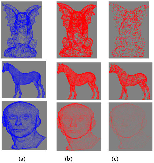 - Qi, J.; Hu, W.; Guo, Z. Feature Preserving and Uniformity-Controllable Point Cloud Simplification on Graph. In Proceedings of the 2019 IEEE International Conference on Multimedia and Expo (ICME), Shanghai, China, 8–12 July 2019; pp. 284–289. [Google Scholar]