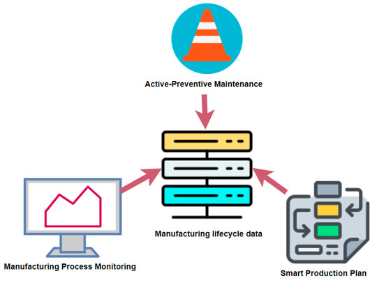 24]. Fault diagnosis and operation process optimization can be accomplished by storing and analyzing data for active preventive maintenance, repair, and overhaul (MRO), through Big Data from IIoT.