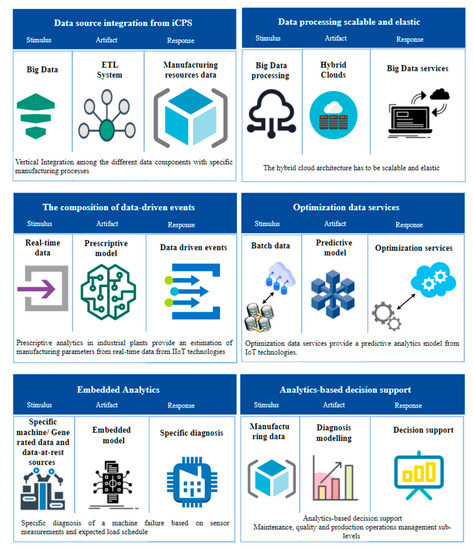The development of architectures of Big Data analytics that consider the different points of view in the technological merge that occurs in iCPS and allows the development of Big Data analytics platforms is another of the approaches of several researchers. For example, an architecture that collects and integrates industrial data from IIoT and manufacturing information systems (MIS) is proposed in [