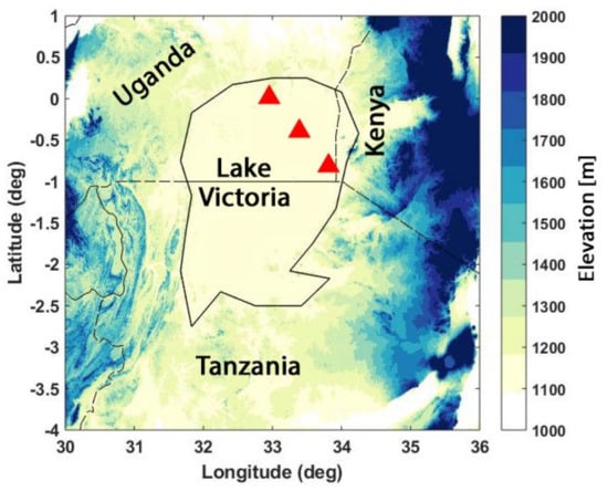 Lake Victoria, the world’s second largest freshwater lake that supports over 42 million people within its basin (e.g., []) has recently undergone unprecedented changes caused by multiple factors such as heavy rains, human activities, environmental degradation, and urbanization, which have led to a significant water level rise (e.g., [,]). In the past two years (2019–2020), the lake’s water level increased remarkably to an all-time record that resulted in floods, impacts on drinking water and sanitation systems, increased water-related diseases, and impacts on hydropower infrastructures []. In addition to providing water resources, the lake supports the region’s agriculture, fisheries, and hydropower, and is also known to modulate the regional climate (see, e.g., [,]). These vital roles played by the lake suggest the fact that its short to long-term changes can significantly impact people’s livelihood in the region and beyond (see, e.g., []).