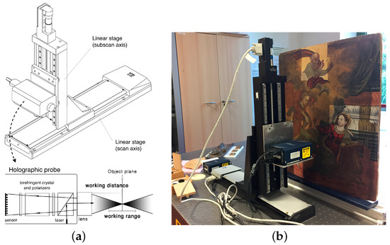 - Gaburro, N.; Marchioro, G.; Daffara, C. A versatile optical profilometer based on conoscopic holography sensors for acquisition of specular and diffusive surfaces in artworks. Proc. SPIE 2017, 10331, 48–56. [Google Scholar] [CrossRef]