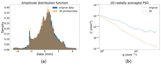 Signal of the original surface and 3D printed replica: (a) height distribution and (b) power spectrum.
