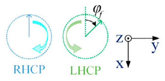 As shown in Figure 1, the ideal RHCP and LHCP components with respective amplitudes of and propagating in the direction can be expressed as follows: