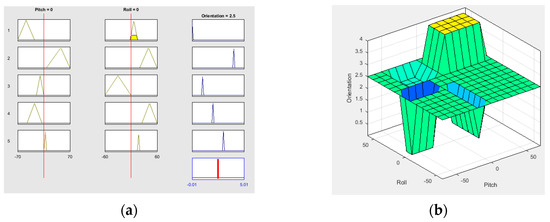 Figure 13a shows the membership functions for pitch angle. Figure 13b shows the membership functions for roll angle. Figure 13c describes the output membership functions, which is the prototype orientation.
