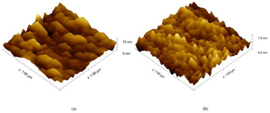 AFM surface topography images: (a) Ag–Au bimetallic layer; (b) Au single-metallic layer.