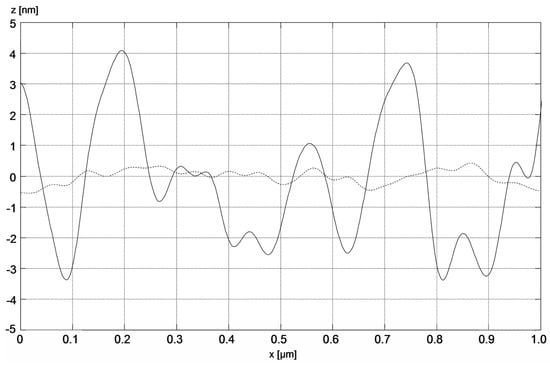 In search of the causes of these differences and comparing the cross-sectional profiles of the surfaces in Figure 5, one can perceive distinct differences in the geometric characteristics of both sensors’ surfaces. Surface roughness parameters are usually linked to sensor performance []. As shown above, the influence of roughness of the Ag–Au layer was already accounted for in the component of sensitivity SRI through a slightly higher value of the imaginary component of relative electric permittivity of Ag. It seems that Snc sensitivity can be linked to another aspect of the geometric characteristics of the sensing surface. It seems that convex fragments of the surface (Figure 8) with a positive sign of radius of curvature r and those more deeply immersed in the tested solution, with the bioreceptors located on the surface, will more intensively bond with analyte molecules in comparison to concave fragments of the surface in depressions. The local “expansion” of the convex surface fragments and the geometric arrangement of receptors associated with it should facilitate bonding with analyte molecules. In addition, the diffusive nature of transport of these molecules, occurring in the direction of negative values of the z coordinate, fosters adsorption of the analyte at the highest points on the surface, where the concentration of analyte molecules available for reaction is the greatest during the active phase of the biosensor’s operation. Therefore, these fragments of the surface should be characterized by a higher increment value of refractive index n, arising from the greater increment of the density of adsorbed analyte molecules as concentration c increases, and thus, by a greater value of sensitivity Snc than the sensitivity of concave areas (r < 0) with a lower z coordinate.