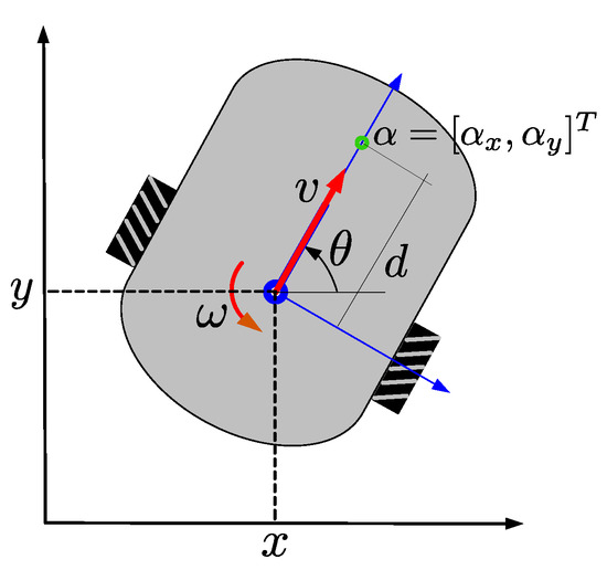 17]. Due to the nonholonomic motion constraints of unicycle-type robots, dynamic feedback linearization of the kinematic model has been used to propose nonsingular control laws for the robot position, for instance, in [