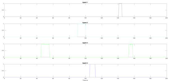 Figure 11 shows the transition function along the simulation time for each robot. All the agents activated the multitask control (