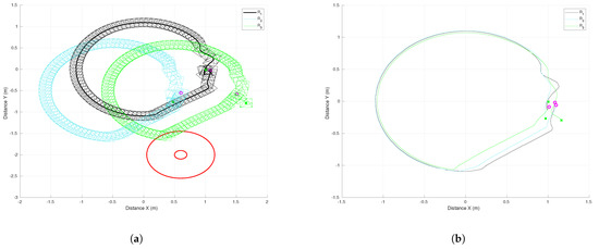 Figure 17b shows the trajectories of the virtual agents computed from the position of the robots and the displacement vectors