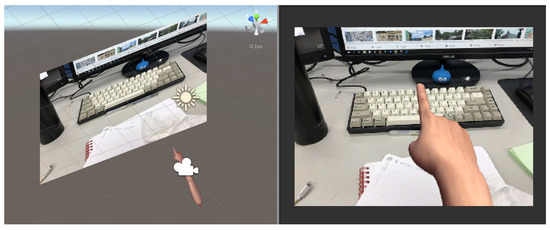 Stephan R. Richter, Vibhav Vineet, Stefan Roth, & Vladlen Koltun. [25] proposed to use modern computer games to rapidly create pixel-accurate semantic label maps for training images. Inspired by this work, we decided to create our synthetic training dataset using Unity3D. The main idea is to synthesize the 3D hand model into real-world scenes. The major advantage here is that we can use the predefined joint coordinates from the 3D hand model to generate accurate annotations, avoiding poor labeling by human annotators. Figure 6 depicts an example of a synthesized hand superimposed on an image. Since the objective of this research is to enable air-writing for smart glasses, the first-person-perspective view is considered, and it usually shows one hand with varying backgrounds. Using Unity3D to create a large volume of labeled fingertips in various images is thus a good match for the proposed scheme.