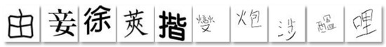 Since the number of types or classes of Chinese characters is much larger than that of English letters, appropriate data augmentation in training is critical. We employed a variety of transforms on the handwritten and printed characters, including random rotations, shearing, translation and perspective transformations. Figure 12 shows some examples after data augmentation, which significantly increases the diversity of characters.