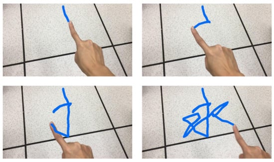 To make the human–device interface of smart glasses more user-friendly, hand gestures were considered in this research to provide necessary commands to smart glasses by pointing or sliding subjects with fingers and viewed from a user’s perspective. To be more specific, we aimed at allowing users to write in the air by their index fingers as the text input since such “air-writing” is quite a natural way for users to conveniently apply and can be read by users themselves. If the fingertip can be detected correctly, the writing trajectories will be formed and further recognition can be applied to correctly determine the written characters. It should be noted that many smart glasses are equipped only with RGB cameras, rather than depth cameras, due to potential cost and weight concerns. However, without the depth information, it is quite difficult to distinguish the foreground (the finger in our scenario) from the background in the smart glasses-captured scenes. Therefore, the major challenge here is to efficiently detect the fingertip in RGB images while overcoming the interference from the complex background, various illuminations, the motion-blurriness caused by fast-moving fingers or cameras, etc.