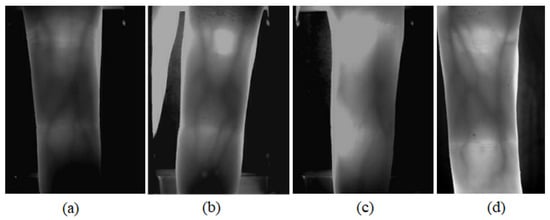 In practical applications, we found that the threshold and mask methods are not very satisfactory in terms of processing time and segmentation accuracy due to the complex background of the acquired images. Many elements in the image acquisition process can cause incorrect finger region segmentation, such as unclear boundaries due to uneven illumination (Figure 2a), incorrect response of edge gradients due to background (Figure 2b), complex background pixel gray value distribution affecting the boundaries extracted by the thresholding method (Figure 2c), and disappearance of upper or lower boundaries due to finger displacement (Figure 2d). The above situations are common in the existing public datasets and practical applications. However, none of the existing methods can segment the finger region perfectly, so we propose a new finger edge search method based on the finger contour imaging characteristics to solve this problem.