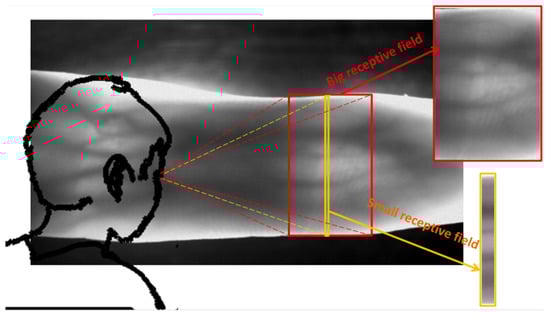 - using the large receptive field gradient operator (size of (11 × 7) as shown in Figure 6) to extract the vertical gradient from finger vein images;