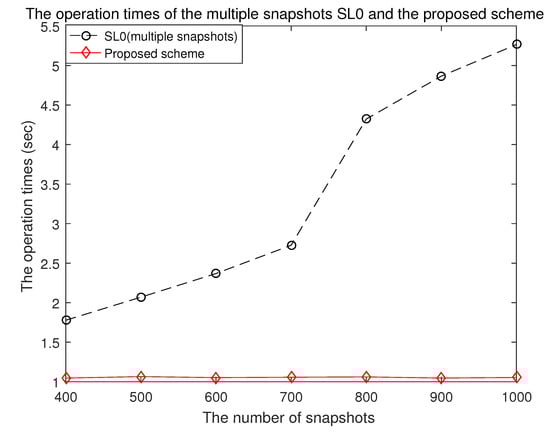 The operation times of the proposed scheme, multiple snapshots SL0 and SpSF.