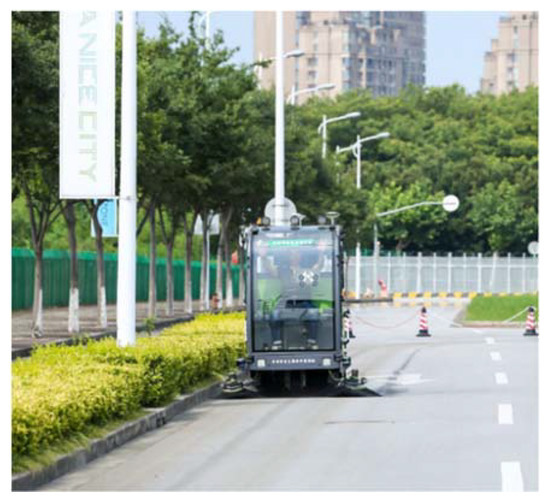 To test the validity of the presented method in unstructured environments, we applied it to a self-driving sweeper. As shown in Figure 6, the autonomous sweeper is designed to collect rubbish, such as leaves, dust, and so on, along the road curb. The vehicle is equipped with a high-accuracy positioning system, visual and lidar perception system, drive-by-wire chassis, decision-planning-controlling module, and remote monitoring and scheduling system. Experiments were conducted in the Ubuntu 18.04 LTS environment with C++ language and executed on an Intel Core i7-4200 H@2.8 GHz with 8.00 GB RAM.