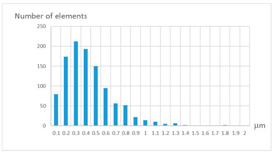 In Figure 6 a histogram of the pattern elements’ displacement calculated in accordance with the above-mentioned procedure is shown. The range of deviations is within 1 μm. The error distribution is close enough to the normal law for the absolute deviation.