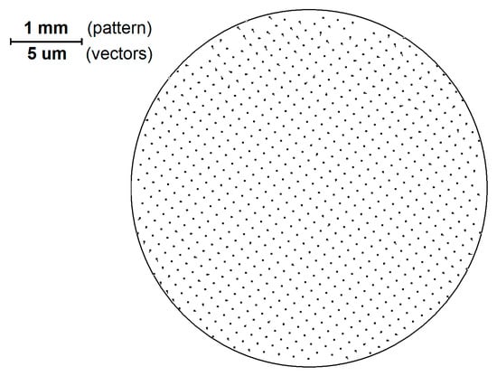Image of the vector field after performing the correction using distortion and pattern displacements correction data (enlarged 200 times compared to the scale of the pattern).