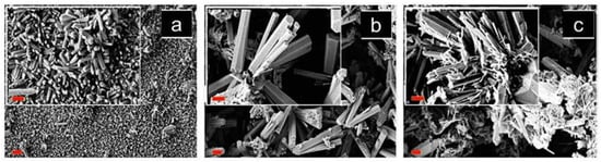 SEM images (scale bars: 2 μm) of the powder sample. (a) Undoped ZnO, (b) Ni-doped ZnO (5 at. %), and (c) Ni-doped ZnO (10 at. %). Note that in insets scale bars: 1 μm. Modified from Reference [8].