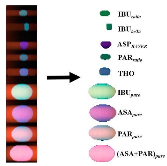 In 2004, the food and drug administration (FDA) in the US started the Process Analytical Technology (PAT) initiative to control manufacturing processes [2]. Hyperspectral imaging is an attractive PAT tool for the quality assurance of final products. Hyperspectral imaging, as expected, will be increasingly used as a PAT tool in the industry; it has been already applied in the industrial manufacturing of pharmaceutical drugs and quality control of pharmaceutical products [16,17]. Most drugs appear colorless to the eye, meaning that they do not absorb light in the visible region but they may absorb in the UV region according to the chemical structure [18]. Such drugs as ibuprofen (IBU), acetylsalicylic acid (ASA) and paracetamol (PAR) show certain absorbance in UV region [19]. Up to now, a variety of drug studies in the UV-Vis region have been performed; Saeed et al. investigated the active pharmaceutical ingredients paracetamol, aspirin, ibuprofen, codeine and caffeine in different formulations by UV-Vis spectroscopy [20]. Rote et al. developed a method to simultaneously quantify paracetamol and nabumetone by area under curve in bulk and tablet dosage form [21].
