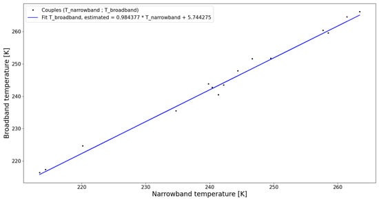 Once the broadband temperature and the narrowband temperature are obtained for each scene, we plot as function of (Figure 11).