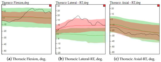 List of anatomical angles. The system uses a rigid-body skeletal model to convert the IMU measurements into joint and segment angles. Shoulder total flexion is a combination of shoulder flexion/extension and shoulder ad-/abduction. Thoracic angles are computed between the cervical vertebra and the thoracic vertebra. Lumbar angles are computed between the thoracic vertebra and pelvis.