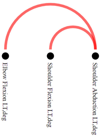 The proposed methodology relies on Graph Learning (GL) theory [39] to identify and represent the relation between pairs of joint angles. An undirected network, or a graph, is given by a set of vertices and a set of edges , where if the vertices and are linked in G. The graph G can be represented by an adjacency matrix , where an entry in W is non-zero if and only if . Since G is undirected, the matrix W is symmetric.