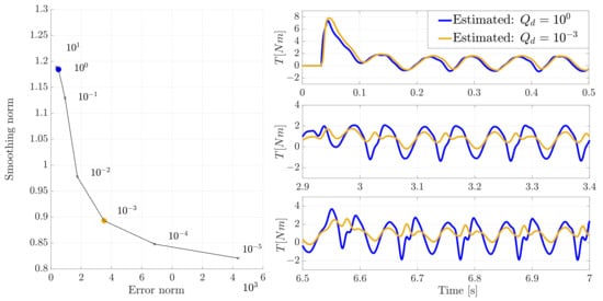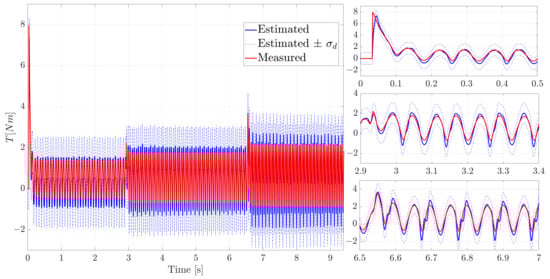 In Figure 9 and Figure 10, it can be seen that despite a relatively similar tracking of the input (more delayed), at low rotational speed using a smaller covariance than the “optimal” one, the estimation accuracy degrades over time with a worse tracking of estimated torque.