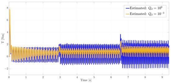 Comparison of the estimated motor torque using two different values of process covariance of the augmented state.