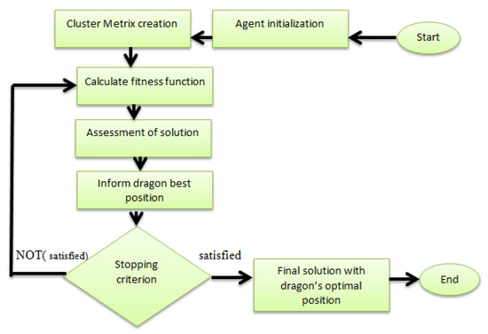 A flow diagram of DFO is shown in Figure 3. In the initialization time, dragonflies in the MN dimensional space have an arbitrary position and fitness values of each dragonfly stored in the dragon array. Correspondingly position matrix and position array is also created. The best value of dragons is stored in the position matrix so far. The dragonflies move in the search space until the solution reaches its optimal state and then search operation is completed. At the end dragonfly’s best position is updated. A similar procedure is used repetitively, till optimum location for each dragonfly is attained.