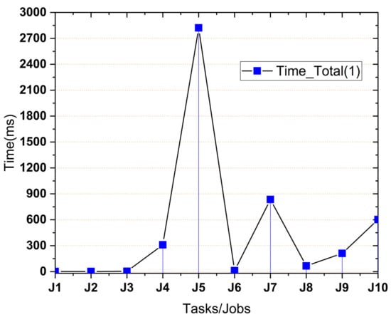 where ƩToffλ is the precise time for task submission until dispatch for scheduling. Furthermore, the scheduler can reject any task based on the task’s information with proper execution and extension. The total time from process load to return after execution on the cloud is calculated with Equation (3). In Equation (3), ƩTtotalλ represents the total time from when the process starts to create and finalize the computed values.