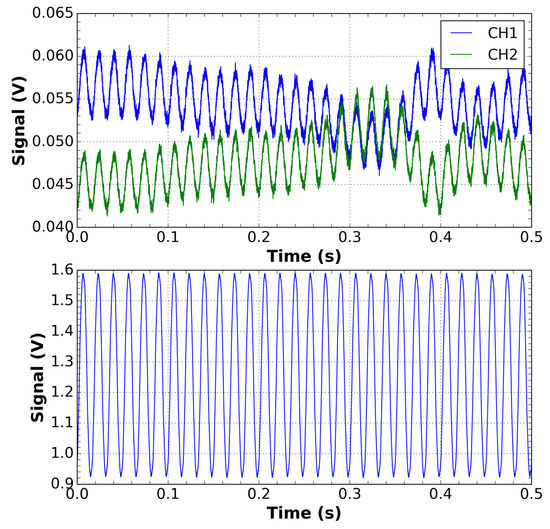 Figure 9 shows the waveforms, in the presence of disturbance, of the two output channels of the sensor as well as the result of the subtraction and amplification that gives rise to the sensor signal.